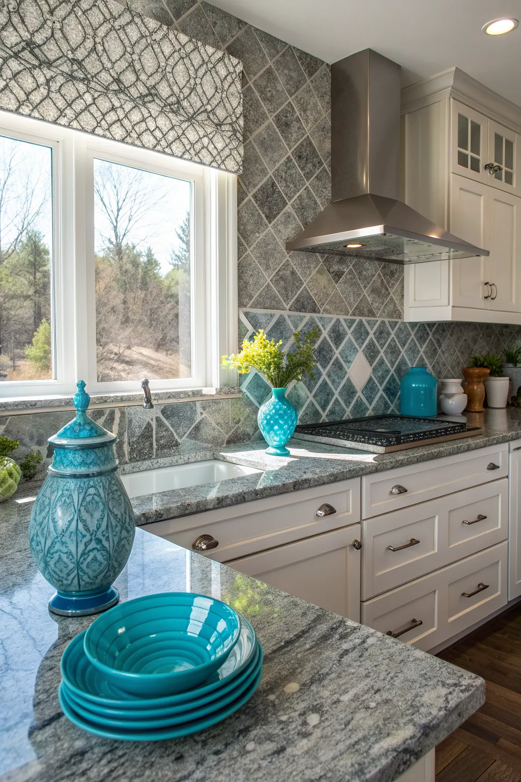 - Decorative Blue and White Ceramic Tile Set: Enhance your kitchen with elegant ceramic tiles that highlight Blue Dunes granite beautifully.