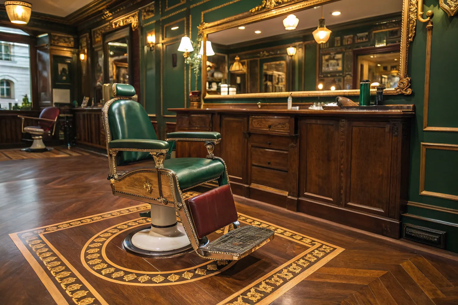 A set of large, intricately framed mirrors can transform any barbershop, making the space feel larger and more inviting. They’re both functional and stylish, reflecting light and life into the room.