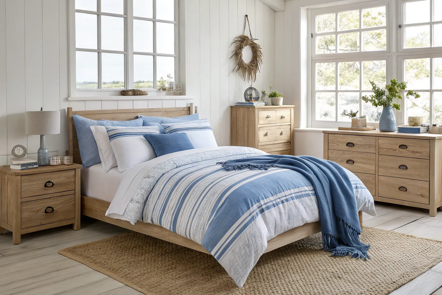 Create a cozy and inviting feel with cottage-style bedding. Blue and white checks or florals can add a charming, homey touch.