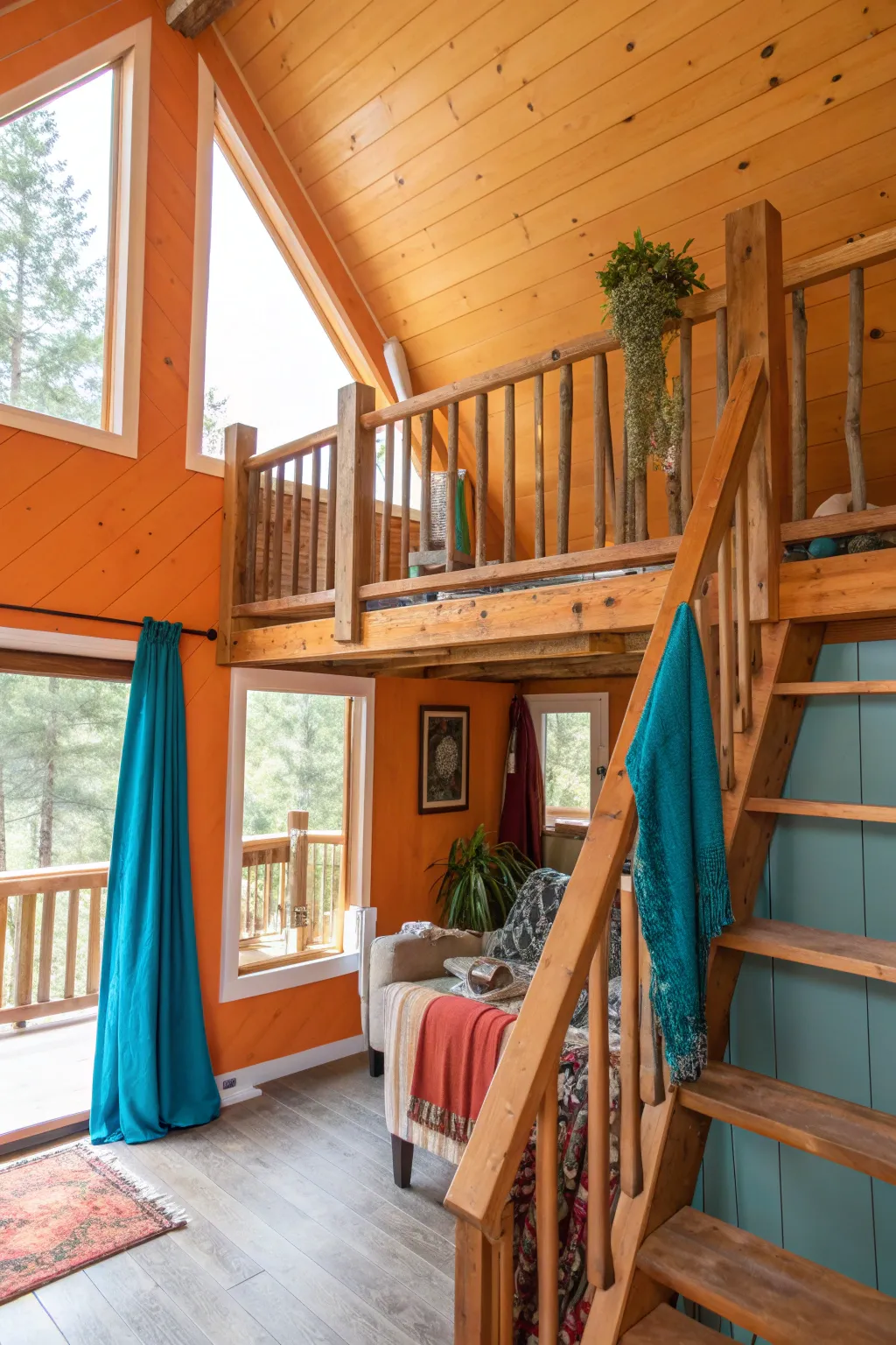 Opt for reclaimed wood railings to add character and sustainability to your cabin loft.