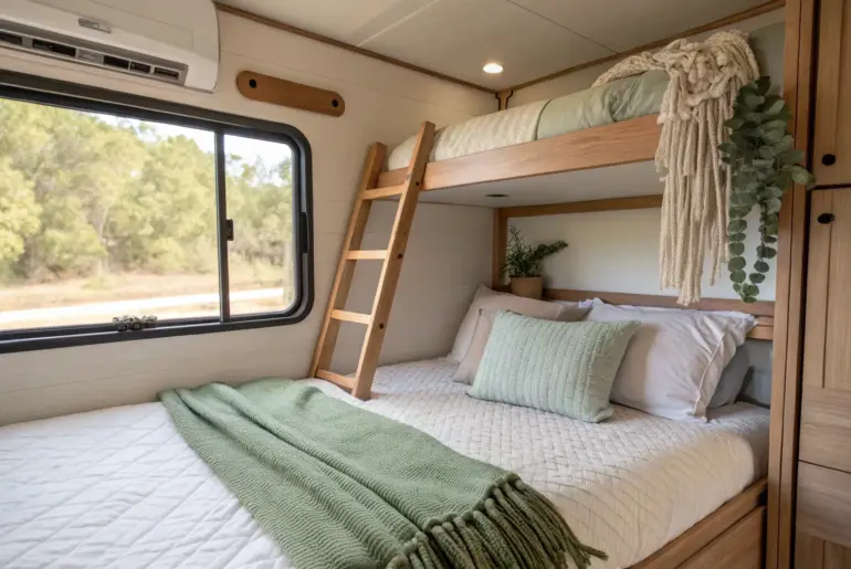 As someone who loves the open road and the cozy confines of an RV, I’ve spent countless hours perfecting the art of bunk bed design. Whether you’re a family of adventurers or a solo traveler, optimizing space with bunk beds can make your RV feel like a home away from home. Convertible Play Area Turn downtime into playtime with a convertible bunk bed play area that keeps kids entertained. Transform the lower bunk into a…