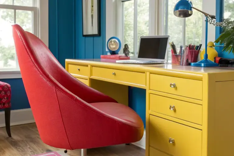 Creating a colorful home office can be a game-changer for your productivity and mood. Let’s explore some inspiring ideas to infuse your workspace with vibrant energy. Statement Desk Work in style with a statement desk that commands the room. Choose a statement desk in a bold color or material. My vivid desk serves as both a functional workspace and a centerpiece. A few choices to try: Teal Colored Writing Desk: Brighten your workspace with a…