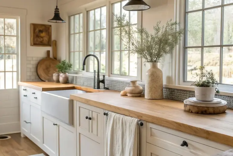 There’s something inherently cozy about farmhouse kitchens, especially when they feature stunning wood countertops. Let’s explore how you can bring that rustic charm into your own kitchen space with these creative ideas. Embrace Natural Wood Finish Let the natural beauty of wood grain take center stage in your kitchen. The warmth and character of natural wood transform any space. Choose natural wood grain countertops to highlight the warm tones and rustic charm that define farmhouse…
