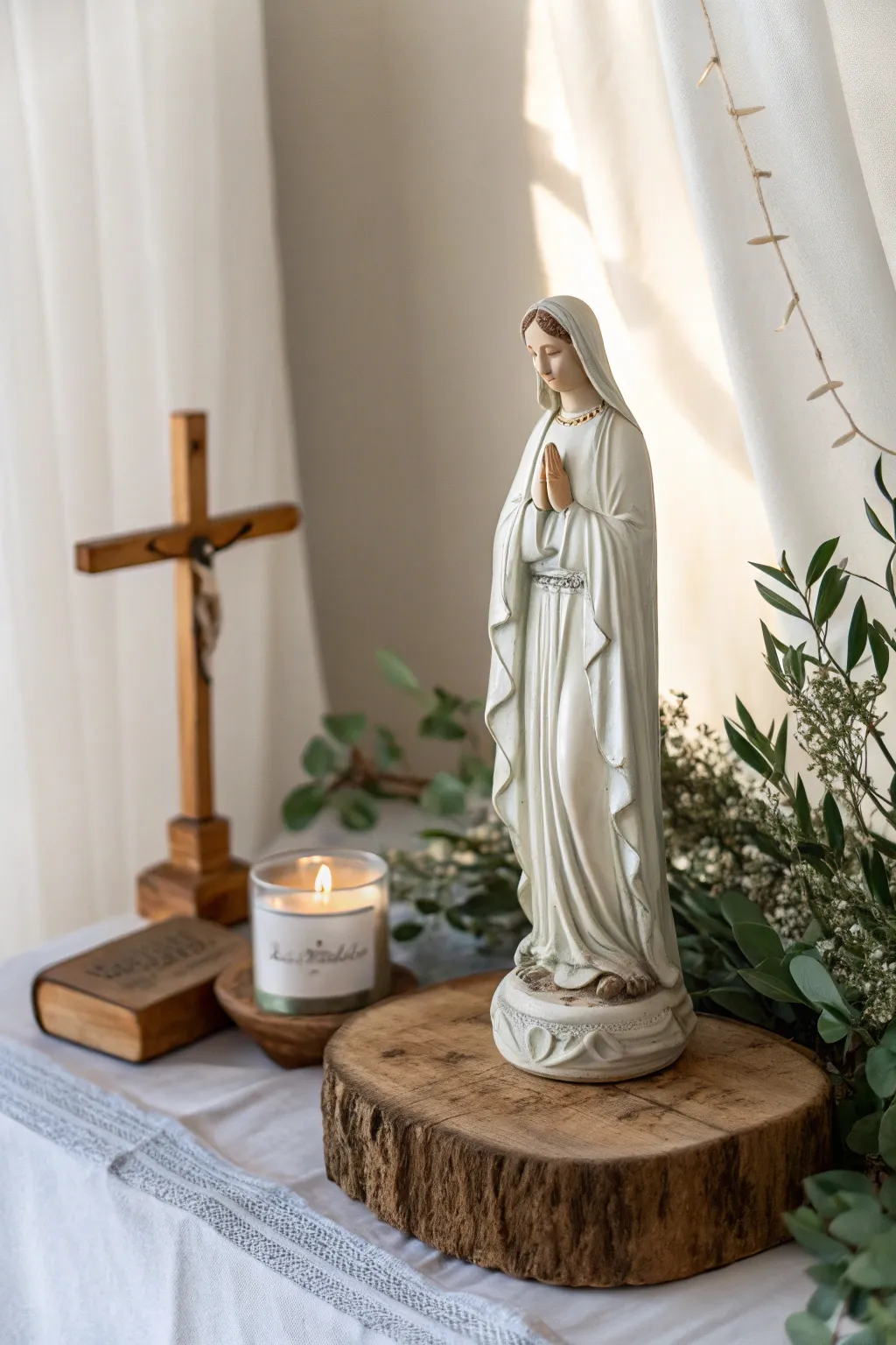 Adding statues of the Virgin Mary or saints can provide comfort and inspiration. Personally, a statue of Saint Francis brings a sense of tranquility to my space.