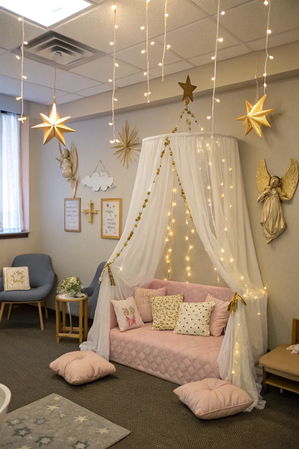 - Canopy Drapes with Fairy Lights: Create an enchanting atmosphere with canopy drapes and lights, perfect for biblical storytelling sessions.