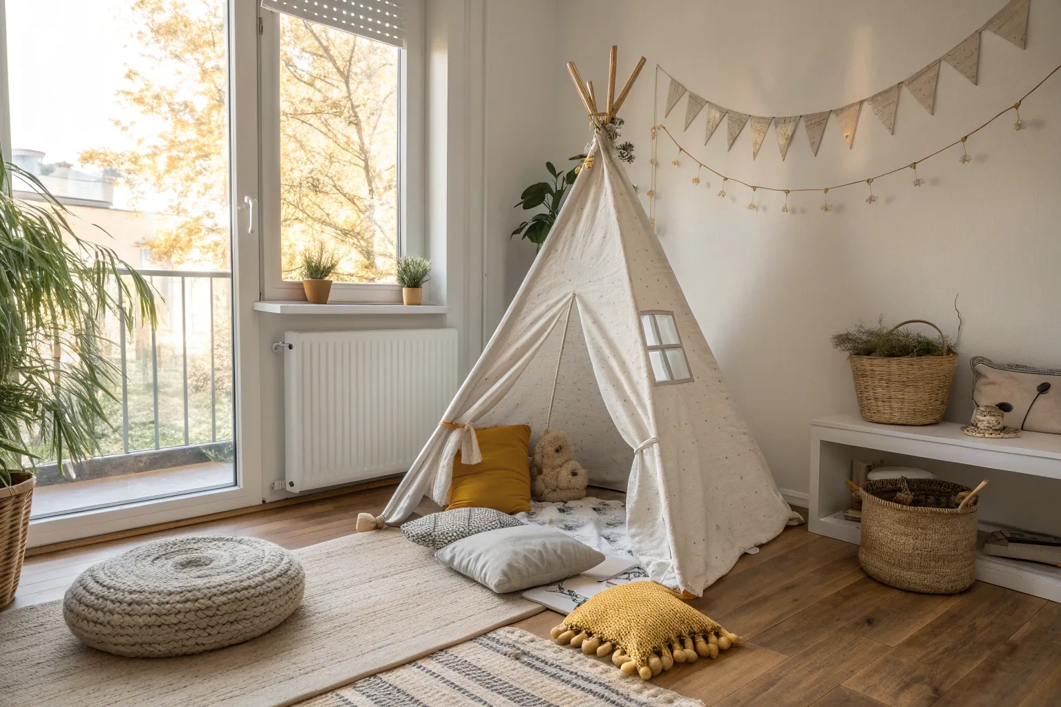 Add a canopy tent to define the play space and create a cozy nook. It’s a great spot for reading or pretend play, giving kids their own secret hideaway.