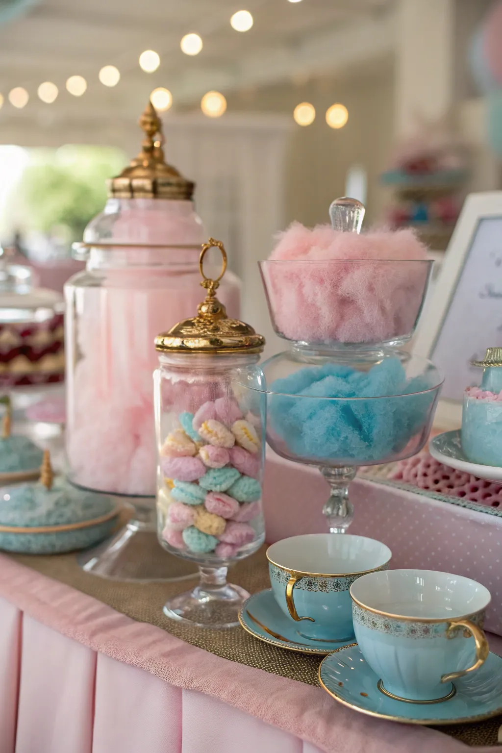 Create the illusion of floating cotton candy by using clear stands or holders. It’s a magical effect that never fails to impress.