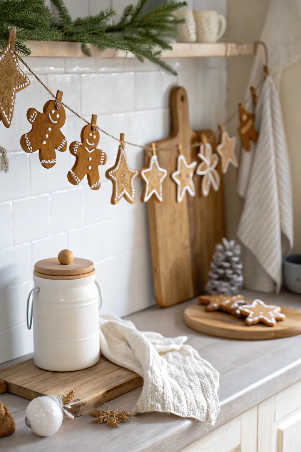 String together gingerbread cookies to create a delightful garland. It’s an easy DIY project that adds a sweet touch to your kitchen.
