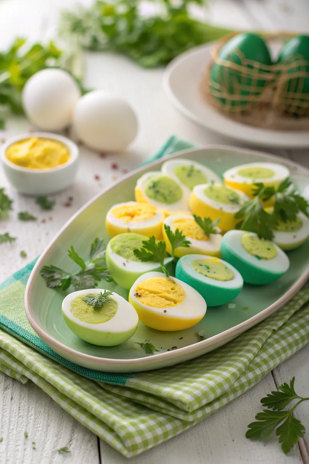 Add character to your eggs by using sliced peppers for faces or hats. This spicy twist adds both flavor and fun to your presentation.