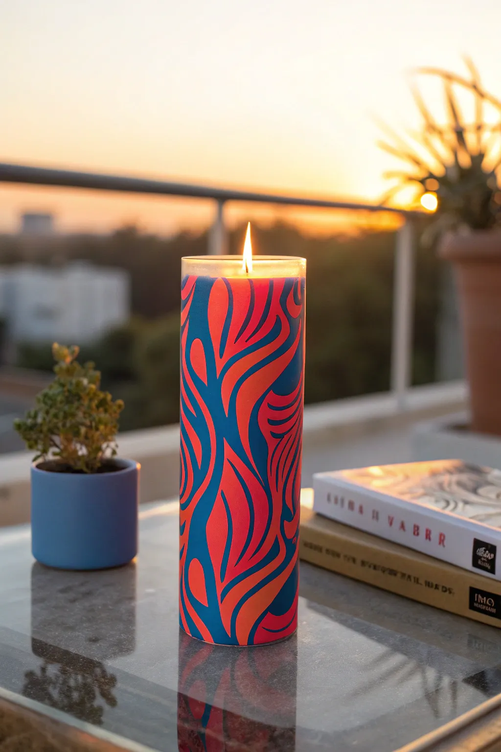 • Bold Abstract Candle Wraps: Elevate your candle’s look with colorful abstract wraps. Unleash your creativity and style easily.