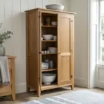 A tilt-out cabinet offers a charming way to hide your trash can while adding a touch of rustic elegance. I love how it combines practicality with a visually appealing design.
