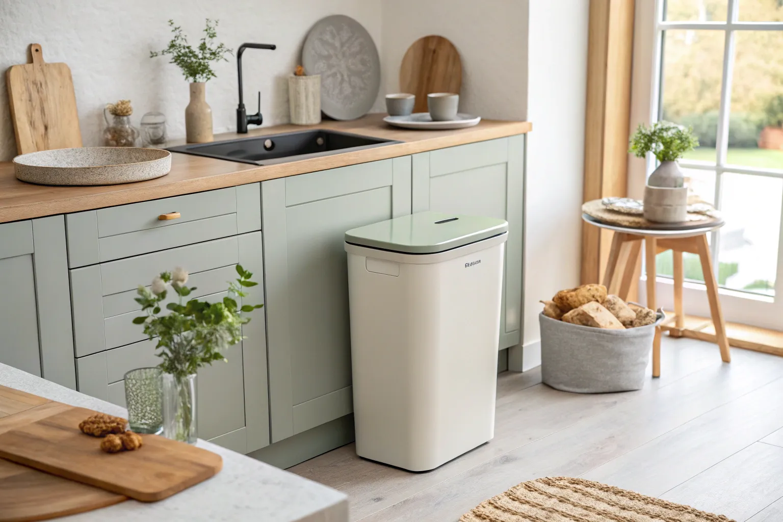 A stylish trash can can seamlessly blend with your kitchen decor.