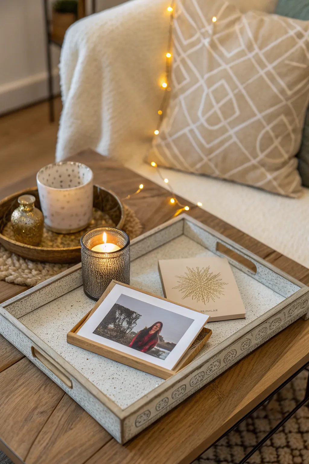 Pairing functional items like coasters or small boxes with decorative pieces keeps your tray both stylish and practical. It’s a win-win for form and function.