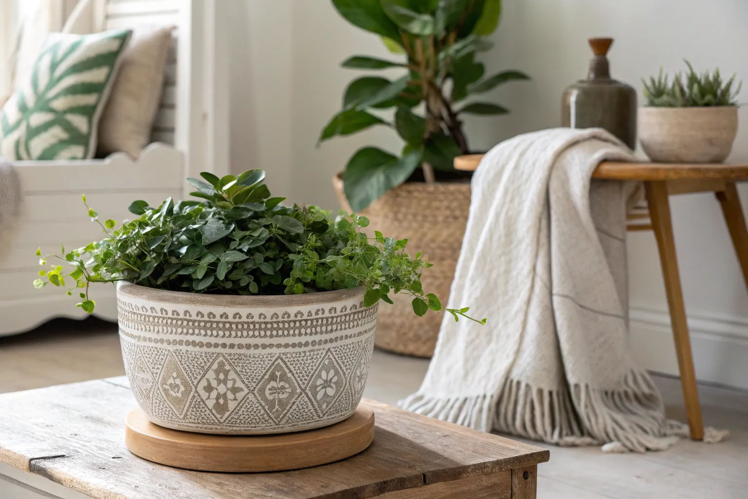 - Decorative Low Planter with Geometric Design: Enhance your space with this eye-catching low planter, perfect for mixing textures seamlessly.