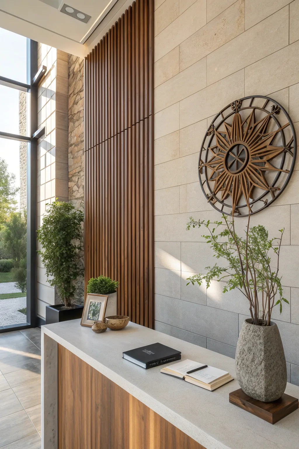 - Vertical Wood Slats: Add sleek, vertical wood slats for a modern and sophisticated office look.