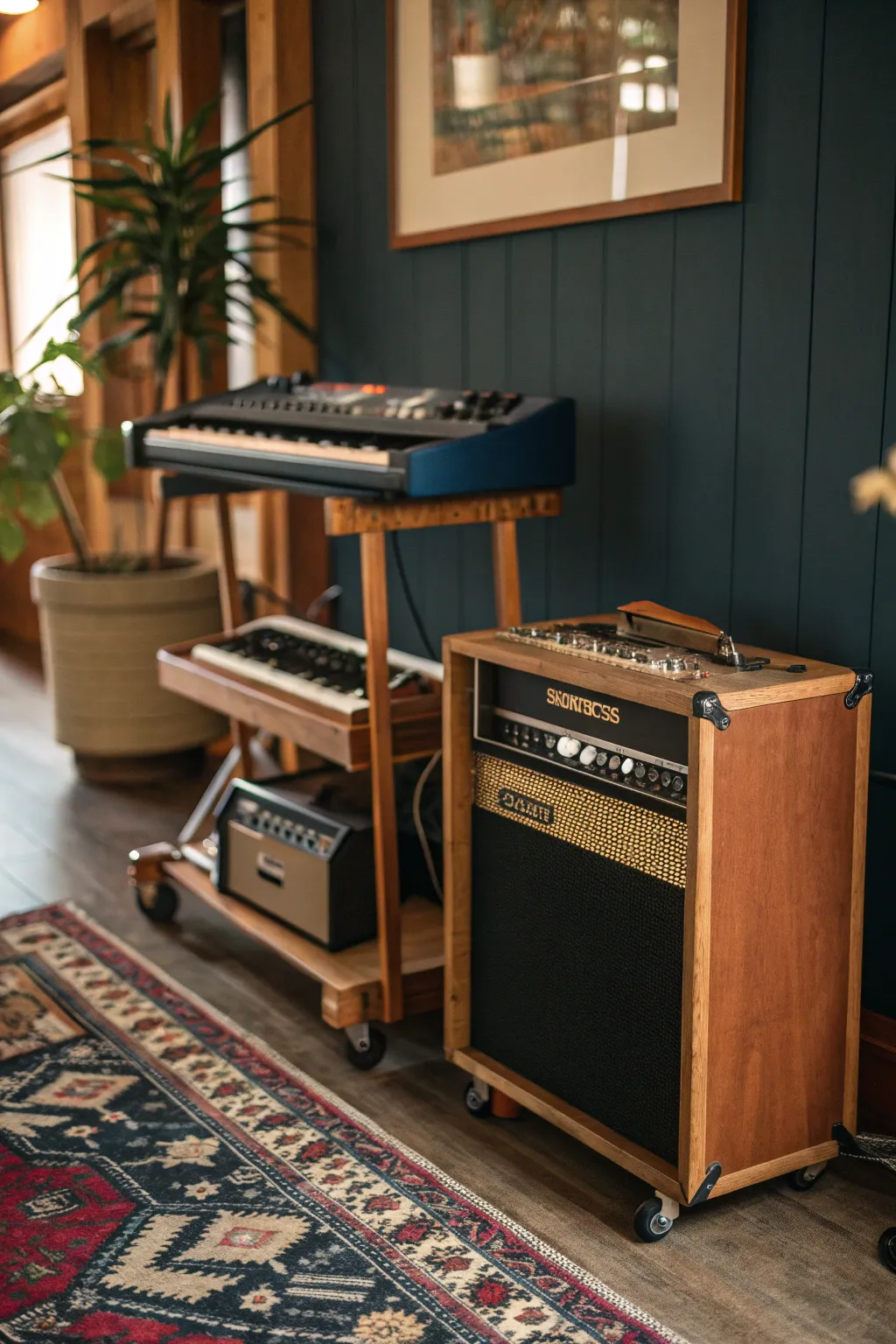 A rolling cart can be a versatile storage solution for instruments you frequently move around. I find it perfect for my keyboards and amps.