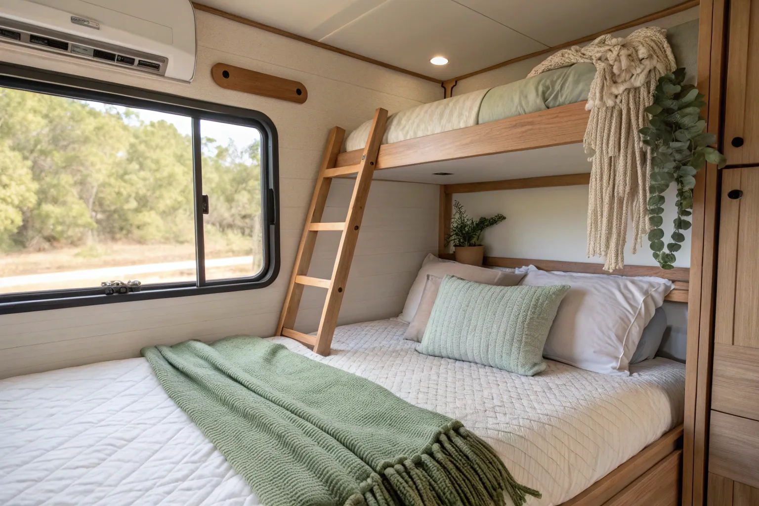 - Wooden Bunk Bed Ladder with Railings: Combine elegance and security with a sturdy, railable ladder that complements your RV decor.