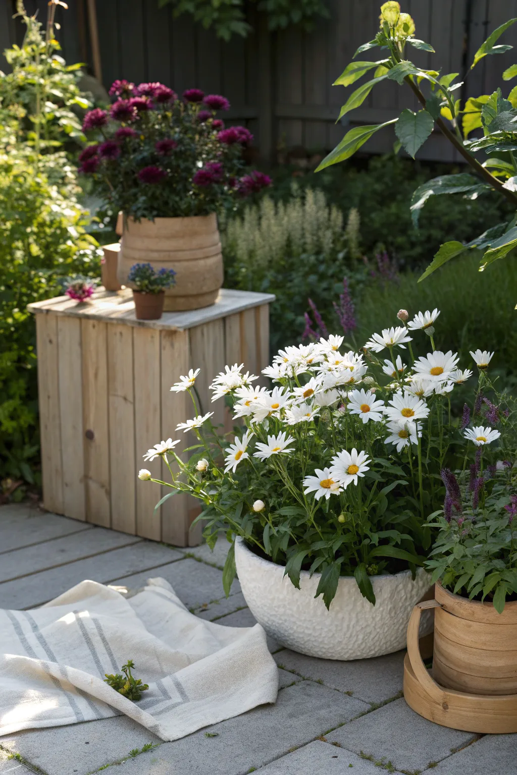 Even small spaces can shine with potted Shasta daisies. Their bright blooms bring a touch of nature to balconies and patios.