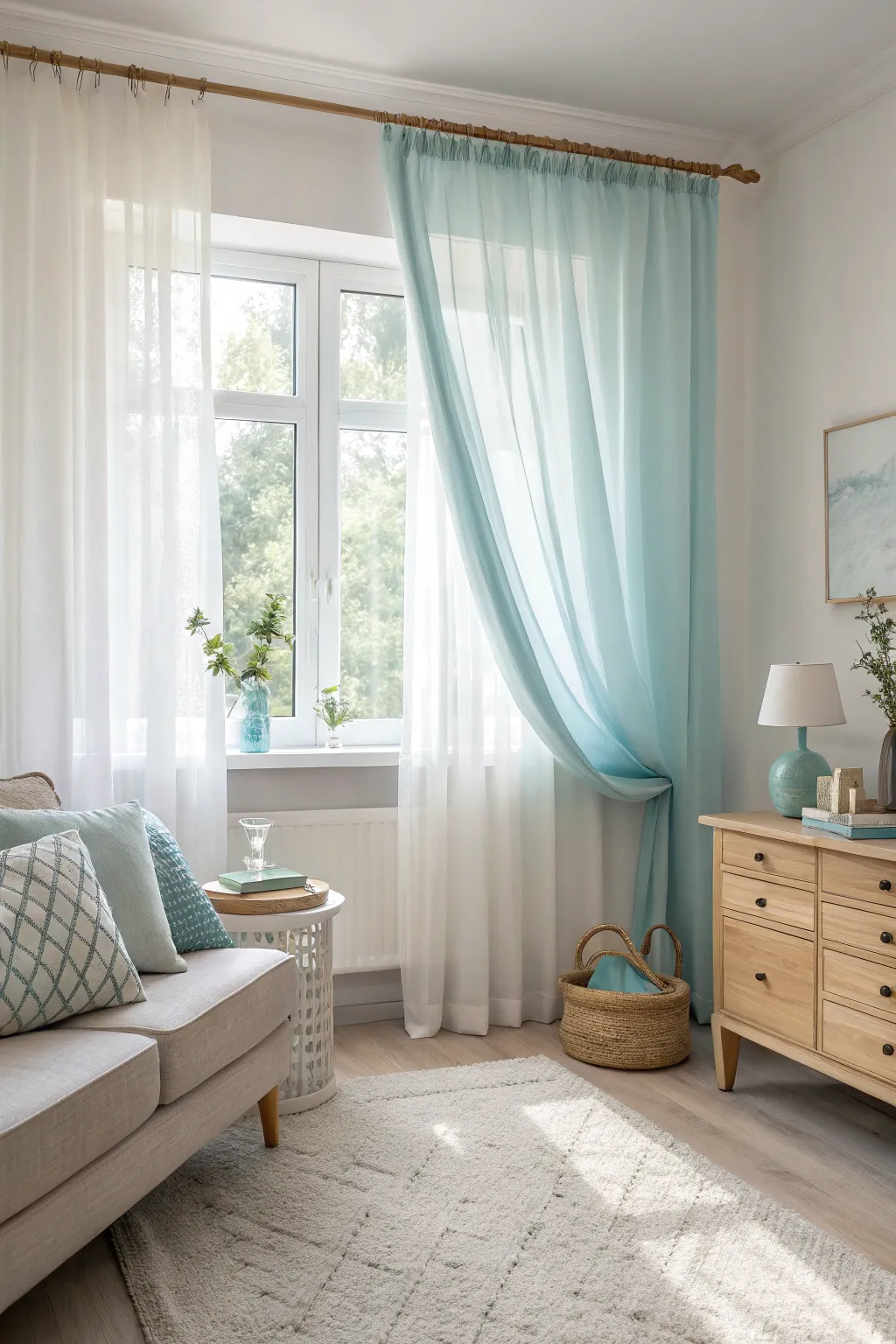 - Light Blue Sheer Curtain Pair: Incorporate a touch of color while maintaining sunlight flow with these blue sheer curtains.