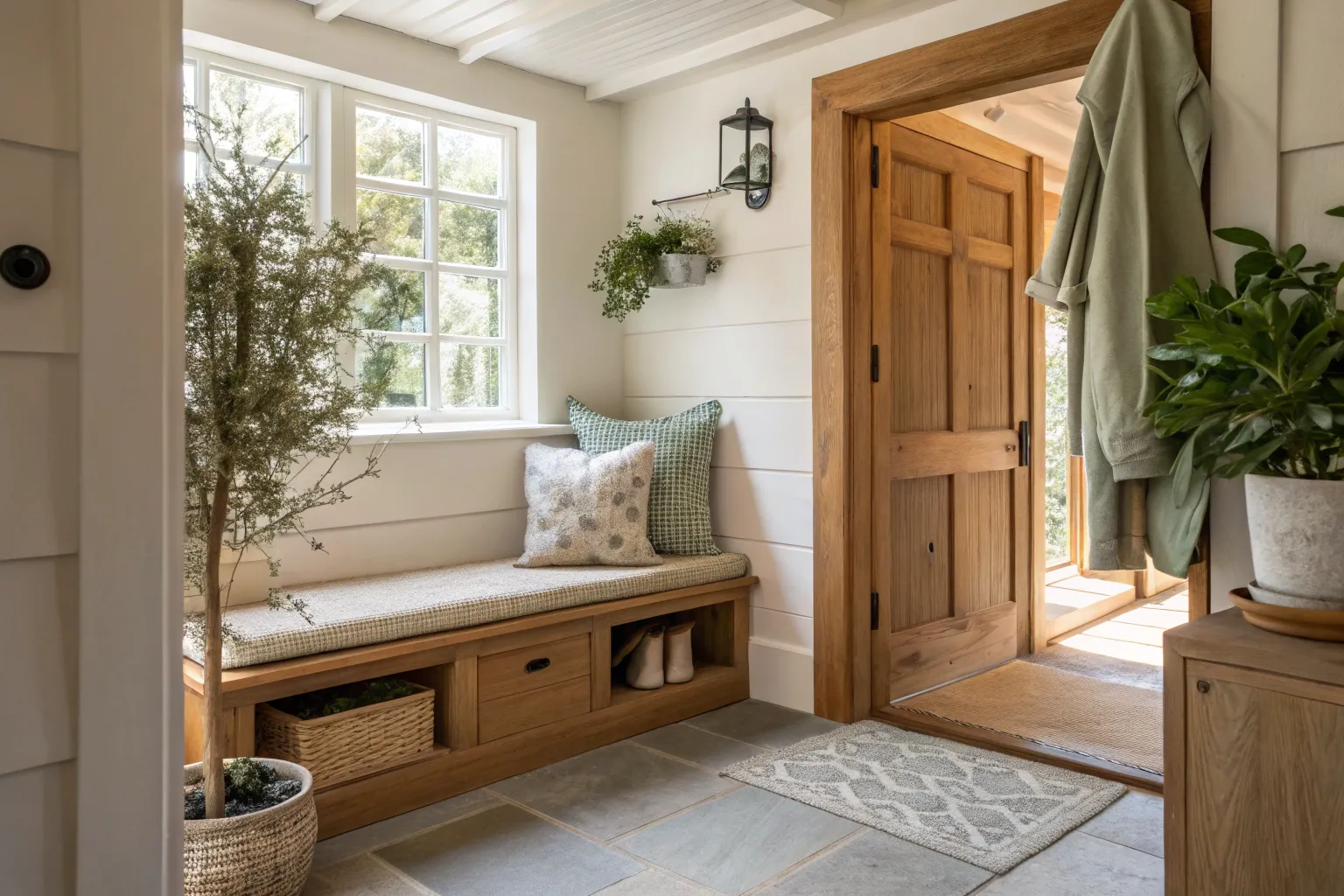 - Storage Bench with Cushioned Seat: Enhance your space with this comfy bench featuring hidden storage. Perfect for small vestibules!