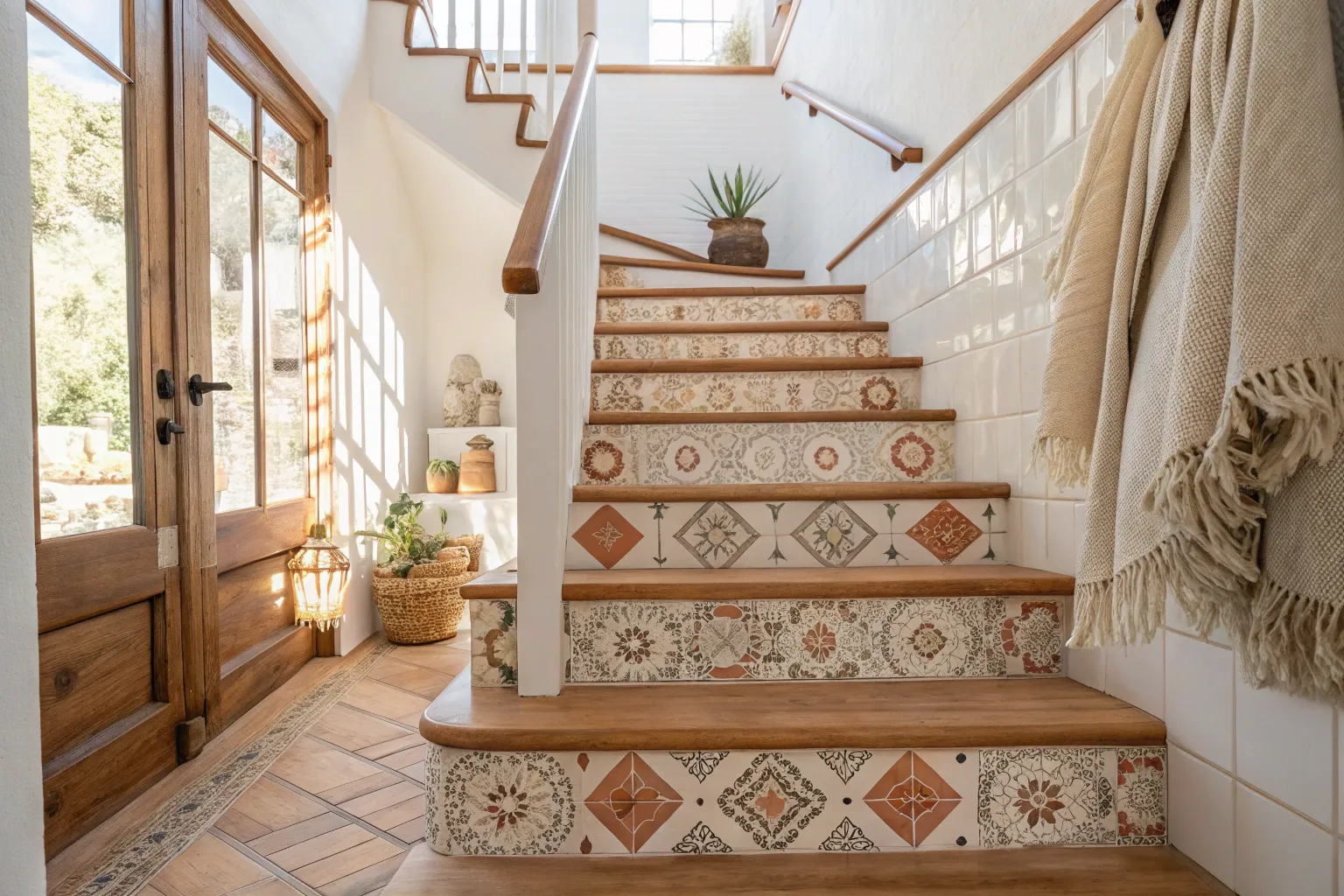 - Moroccan Tile Decals: Revamp your stairs with Moroccan tile decals for an easy, colorful transformation.