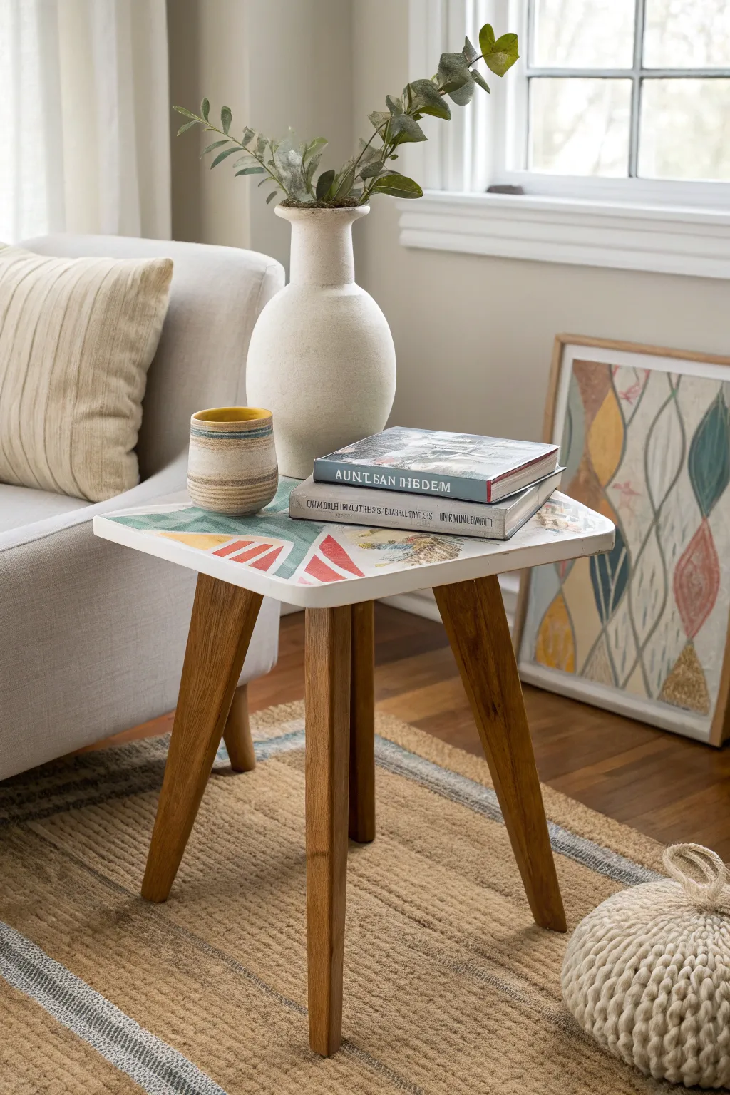 - Colorful Pattern Side Table: Bring charm to any room with a colorful pattern side table. Revitalize your decor instantly.