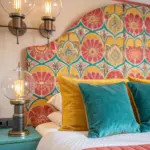 Create a cozy and inviting space with layered blankets in romantic hues.